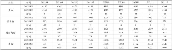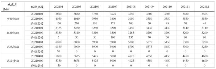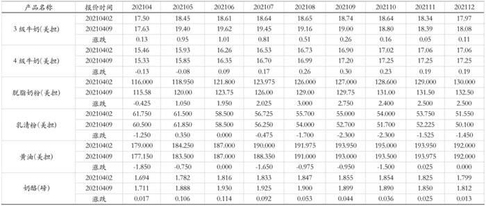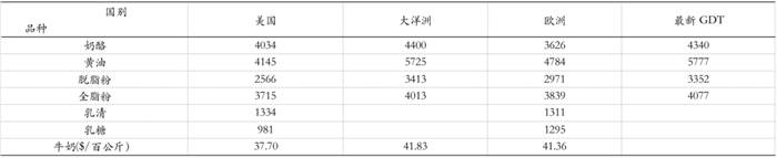 受欧洲餐饮市场恢复影响,黄油及脱脂奶粉均再次上攻。四、各主要市场现货产品价格比较(美元/吨)