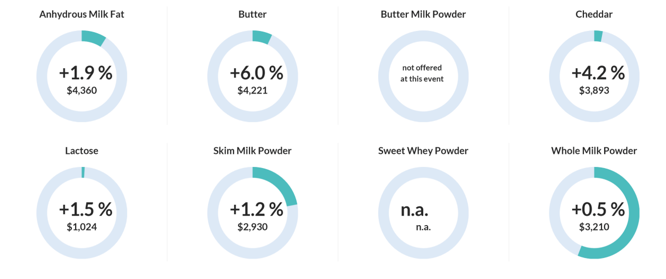 东亚地区的旺盛消费动力拉动了市场,奶粉和乳脂均表现较好,尤其是黄油再次暴涨。
