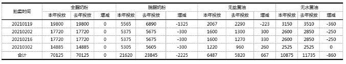 从未来2月投放预期看,全脂奶粉基本稳定,脱脂奶粉缺货已成定局,乳脂的供应再缓慢恢复。
